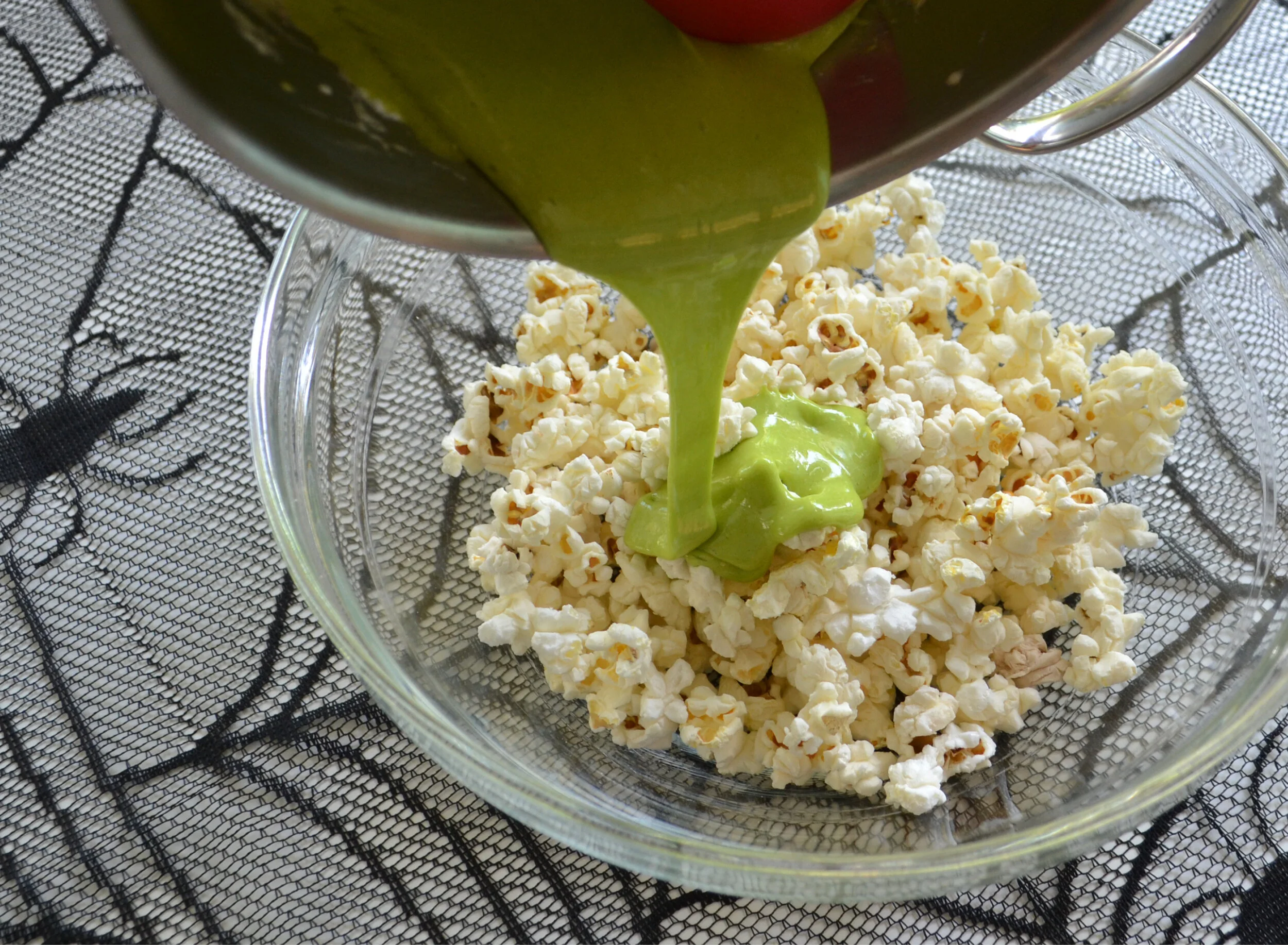 Be careful pouring and mixing the melted marshmallows, they are a bit like lava in this state.